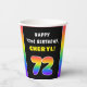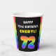 72nd Birthday: Colourful Rainbow # 72, Custom Name Paper Cups