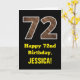 72nd Birthday: Name, Faux Wood Grain Pattern "72" Card