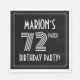 This Roaring Twenties inspired seventy-second birthday celebration/party paper napkin design features a personalised name, a fancy art deco style inspired number “72nd”, the message “BIRTHDAY PARTY!”, and a multi-line border. It features a black-coloured background by default, but it can be customised to a different colour, if desired. Paper napkins like these might be used at a birthday party held in celebration of somebody’s 72nd birthday. [~Z0000616]