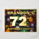The front of this fun and bold seventy-second birthday celebration/party foil invitation card design features a customisable name, a large number “72nd”, the message “BIRTHDAY PARTY!”, and a border. The background of the front has an upbeat, colourful pattern that resembles bursting celebratory fireworks. The back features personalised details about the event, such as the date, time, venue/place, and any other relevant information. Customised invitations like these might be a fun way to invite guests/attendees to a birthday gathering/party being held in celebration of somebody’s 72nd birthday. [~Z0000602]