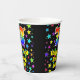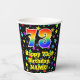 This colourful and joyful birthday themed paper cup design features a large number “73” with a rainbow spectrum gradient inspired pattern, along with the message “Happy 73rd Birthday,”, and a personalised name. The background features an exciting and colourful star field inspired pattern. Colourful, vibrant paper cups like this might be fun to use at a birthday party being held in celebration of somebody’s seventy third birthday. [~Z0000540]