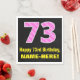 This fun and joyful birthday-themed paper napkin design features a large number "73" having a stripes pattern containing heart shapes coloured dark pink and light pink. It also features the birthday greeting message "Happy 73rd Birthday,", and a custom name. Paper napkins like this might be fun to use at somebody’s seventy third birthday celebration or party. It might also be a fun choice for somebody whose birthday falls on February 14th (Valentine's Day), due to its loving heart symbols and colours. [~Z0000436]