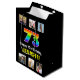 This fun and bold birthday gift bag design features a large number “73“ having a multicolor rainbow spectrum inspired gradient pattern, plus the message “Happy 73rd Birthday,“ and a personalised recipient name. Above and below the message are some photos that can be personalised, perhaps with photos of the recipient, the recipient’s family and friends, and/or the sender(s) of the gift. A gift bag like this might be a fun way of wrapping a birthday gift being given to somebody who is celebrating their seventy-third birthday. (Photography © Storytree Studios, Stanford, CA.) [~Z0000669]