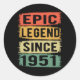 74 Years Old Bday 1951 Epic Legend 74th Birthday Classic Round Sticker