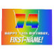 This cheerful and exciting birthday themed gift bag design features a large number “74” with a colourful rainbow spectrum inspired gradient pattern, along with the message “HAPPY 74th BIRTHDAY,”, and an editable recipient name. The background also features a vibrant multicolored rainbow spectrum inspired gradient pattern. Giftbags like this might be used when wrapping gifts being given to somebody in celebration of their 74th birthday. [~Z0000577]