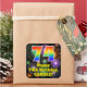 This fun and cheerful birthday themed square sticker design features a large number “74” having a colourful rainbow spectrum gradient inspired pattern. It also features the message “Happy 74th Birthday,”, and a custom name. The background features a colourful pattern inspired by the appearance of bursting celebratory fireworks. Fun, colourful, personalised stickers like this might be given as a birthday present, or used while wrapping presents, or perhaps used as birthday party decorations when celebrating somebody’s 74th birthday. [~Z0000579]