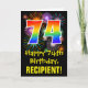 74th Birthday: Fun Fireworks Pattern + Rainbow 74 Card