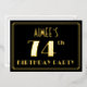 The front of this vintage-appearance and 1920s/1930s style inspired seventy-fourth birthday celebration foil invitation features an editable name, a large art deco look inspired number “74th”, the message “BIRTHDAY PARTY”, and a border pattern consisting of lines. The background of the front is coloured black by default, but it can be customised to a different colour if desired. The back features personalised details about the event, such as the date, time, venue, and any other important information. Elegant, luxurious, personalised invitations like these might be used to invite guests to a birthday gathering being held to honour somebody’s 74th birthday. [~Z0000591]