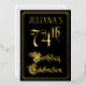 The front of this ornate, elegant, foil seventy-fourth birthday party/celebration invitation design features the message “74th Birthday Celebration” in luxurious script-style text. It also features a custom name. The background of the front is coloured black by default (although it can be customised to a different colour). The back features personalised details about the event, such as the date, time, location, and any other relevant information. Luxurious, opulent, customisable invitations like these might be used to invite guests to a birthday celebration/party being held to honour somebody’s seventy-fourth birthday. [~Z0000589]