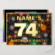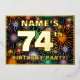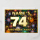 The front of this fun seventy-fourth birthday celebration/party foil invitation card design features an editable name, a large number “74th”, the message “BIRTHDAY PARTY!”, and a border. The background of the front has a bold, colourful pattern inspired by bursting celebratory fireworks. The back features personalised details about the event, such as the date, time, place/venue, and any other information that may be useful. Personalised invitations like these might be a fun way to invite guests to a birthday party/gathering being held in celebration of somebody’s 74th birthday. [~Z0000602]