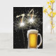 Party sparklers with gold confetti and a mug of beer for 74th birthday.