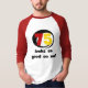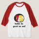 I bought the Men's Basic 3/4 Sleeve Raglan T-Shirt, White/Navy. It arrived on time for a gift and is of a great quality and fits perfectly! So cute! Zazzle has done it again! The printing was clear and filled in solidly.