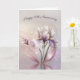 Mauve and white iris flowers with intricate details are outlined in gold and adorned with dew drops for 75th wedding anniversary.