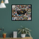75th Birthday 100 Photos Black Gold Cheers To Year Poster. Create a 75th birthday photo memory display poster print utilising this easy-to-upload photo collage template with 100 pictures in various sizes to accommodate pictures of her or him through the years for a fun birthday sign or party decoration and commemorative keepsake. The design features the title CHEERS TO 75 YEARS with gold foil balloon numbers and your custom text (the sample says HAPPY BIRTHDAY NAME) in your choice of text of font styles and colours as well as background colour (shown in black). OPTIONS: The sample is shown in a 36X29" size on Value Paper (Matte); other standard and custom print sizes, paper quality and framing, Instant Digital Download file for printing locally or transferring the design to a foam board, banner, canvas or other product options are available on the ordering page. RESIZING TIP: Choose Custom Size for even borders by changing the height and width proportionately AFTER clicking the UNLOCK icon (looks like a chain link). ASSISTANCE: For help with design modification or personalisation, colour change, resizing or transferring the design, contact the designer BEFORE ORDERING via the Zazzle Chat MESSAGE tab or email makeitaboutyoustore@gmail.com.
