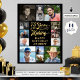 75th Birthday 14 Photo Collage YEARS IN THE MAKING Poster Print Sign. Celebrate a 75th birthday for him or her with photo memories through the years with this photo display printed on poster print utilising this easy-to-upload photo collage template with 14 pictures featuring a retro calligraphy script typography title design 75 YEARS IN THE MAKING which incorporates their birth year within the design and your custom text in gold on your choice of background colour (shown in black). The sample shows HAPPY BIRTHDAY NAME.