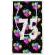 Colourful 75th birthday balloon bouquets with party confetti on black background.