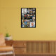 75th Birthday Black Gold 21 Photo Cheers to Years Poster. Create a 75th birthday photo memory display poster print utilising this easy-to-upload photo collage template with 21 pictures of her or him through the years for a fun birthday party decoration and commemorative keepsake. The design features the title CHEERS TO 75 YEARS with gold foil balloon numbers and your custom text (the sample says HAPPY BIRTHDAY NAME) over the centre photo in your choice of text of font styles and colours as well as background colour (shown in black). OPTIONS: The sample is shown in a 18X24" size on Value Paper (Matte); other standard and custom print sizes, paper quality and framing, Instant Digital Download file for printing locally or transferring the design to a foam board, banner, canvas or other product options are available on the ordering page. RESIZING TIP: Choose Custom Size for even borders by changing the height and width proportionately AFTER clicking the UNLOCK icon (looks like a chain link). ASSISTANCE: For help with design modification or personalisation, colour change, resizing or transferring the design, contact the designer BEFORE ORDERING via the Zazzle Chat MESSAGE tab or email makeitaboutyoustore@gmail.com.