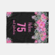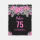 Elegant design for a 75th birthday party with a pink "80 and fabulous" and a scripted name embellished by a feminine watercolor flowers on a black background. Customise age, text, name and background colour.