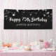 Celebrate a 75th birthday (or any age or event since the text is editable) and/or decorate for the party with this banner sign with your custom title in a handwritten brush script font and custom text below and bordered with silver stars. CHANGES: Change the black background colour and/or change the text font style, size, colour or placement to easily make it your own style by clicking on CUSTOMIZE FURTHER under the PERSONALIZE section. Contact the designer via Zazzle Chat or makeitaboutyoustore@gmail.com if you’d like this design modified, on another size banner, on another product or would like coordinating items.