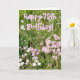 Photograph of some pretty wild flowers taken late afternoon.Pink text: 'Happy 75th Birthday!' Inside in Blue lettering: Have A Wonderful Day!