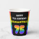 75th Birthday: Colourful Rainbow # 75, Custom Name Paper Cups
