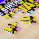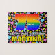 This eye-catching and colourful birthday themed jigsaw puzzle design features a large number “75” having a multicolored rainbow spectrum inspired gradient pattern. It also features the message “HAPPY 75th BIRTHDAY,”, and an editable recipient name. The background features an upbeat pattern of loving hearts having a variety of sizes and colours. A fun, personalised birthday puzzle like this might be given in celebration of somebody’s seventy-fifth birthday. [~Z0000611]
