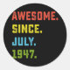 75th Birthday Gift Awesome Since July 1947 75 Classic Round Sticker