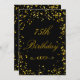 Women's glamourous gold confetti 75th birthday party personalised custom invites template. Elegant, feminine, chic, golden glamour themed invitations for a woman's 75 years old birthday party celebration with a pretty gold leaf confetti border frame image on a classy black background with stylish, fancy, curly, cursive, swirls and curls script. These beautiful, ornate, stunning, girly, modern, contemporary, fashionable, awesome, trendy, sparkly, cool, sophisticated, original and unique, formal, glitz and glam custom invitation templates for luxury, lavish, fun, birthdays for women are decorated on both sides / have double sided printing / printed on front and back. All of the text is fully customisable to meet your needs and you can change the font style, colour and size of font if you desire. Choose from several high quality paper types. If you need any assistance customising your product please contact me through my store and I will be happy to help. PLEASE NOTE: All invitations on Zazzle have flat printed images.