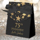 This elegant 75th Birthday Gold Stars Thank You favor box with shimmering gold faux glitter, the birthday girl's name in a trendy script font, and tied with an beautiful black bow would be perfect for your event. It would be great for a candy station, on a thank you gift table, or at each place setting with a favor. Be sure you order enough for all your guests.