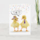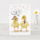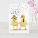 Cute yellow duckings with speech bubble and party confetti on a white background for 75th birthday.