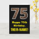 75th Birthday: Name, Faux Wood Grain Pattern "75" Card