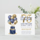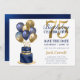 This fabulous men's 75th birthday party Save the Date card featuring a 2-layer navy blue and gold cake with navy blue and gold balloons, the number 75 in gold would be perfect for asking people to put this special date aside for the upcoming 75th Birthday Party. It is traditional and classic while being fresh, modern and contemporary. The back is a coordinating navy blue foil.