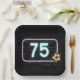 Glowing neon sign with a star on a dark brick city wall for 75th birthday party