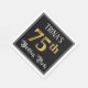 This luxurious and ornate birthday-themed paper napkin design features a personalised name and the message “75th Birthday Party”. The large number “75th” has an imitation/faux gold-inspired colouring pattern, the words “Birthday Party” are in opulent script-style text, and the background is coloured black by default (although it can be customised). Elegant, opulent paper napkins like this might be useful at a birthday celebration being held in celebration of somebody’s 75th birthday. [~Z0000565]