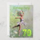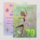 A beautiful ballerina flower fairy dancing on a birthday party invitation. The ballerina is wearing a white tutu, and has trails of flowers coming from her hair. She is dancing through a meadow full of daisies.