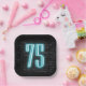 Glowing aqua neon sign on dark brick background for a 75th birthday party.