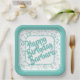75th Birthday Party Number Pattern Teal White Paper Plate