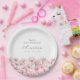 Perfect table decor for a January birthday party. Carnation is the birth flower for that month. It forms a pretty watercolor floral bottom border on this pretty personalized paper plate. The birthday celebrant's name, age and birthdate are placed above it using elegant calligraphy and typography. All text is editable.