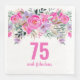 Elegant design for a 75th birthday party with a pink "75" and scripted "fabulous" embellished by a feminine floral design on a white background. Customise age, text and background colour.