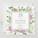 This pink hydrangea 75th birthday brunch/party invitation is whimsical and stunning! With its watercolor multi-hued pink hydrangeas, wispy natural greenery, and coordinating green striped back it is perfect for any woman you love. By selecting Personalise this template and typing in your information you can see your gorgeous invitations in seconds!