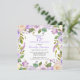 Honor a special person with this elegant watercolor purple floral birthday party invitation. A variety of purple and ivory white roses tucked into dark green foliage create a square botanical frame.