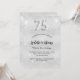 A modern, stylish and glamourous invitation for a 75th birthday party. A faux silver looking background, decorated with glitter, sparkles. Personalise and add your name nad party details. Number 75 is written with a balloon style font, script.