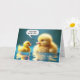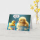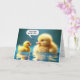 A fluffy duckling and a yellow rubber duck are floating side by side on a calm, shimmering blue surface for a 75th birthday.