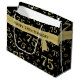 75th Happy Birthday Black/Gold Number Pattern Large Gift Bag