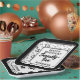 This unique numeric design features a black and white random number pattern with the milestone number 75 displayed in various sizes and angles. A white rounded square serves as the centre for your text, surrounded by black and white elements.