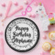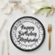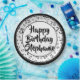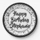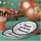 This over-the-hill design has a black and white random number pattern with a black milestone number 75 repeated in varied sizes and angles. There is a white circle in the centre for your text and black and white rings around the rim.
