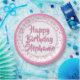 This over-the-hill design has a pink and white random number pattern with a pink milestone number 75 repeated in varied sizes and angles. There is a white circle in the centre for your text and pink-and-white rings around the rim.