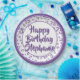 This over-the-hill design has a purple and white random number pattern with a purple milestone number 75 repeated in varied sizes and angles. There is a white circle in the centre for your text and purple-and-white rings around the rim.