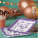 This unique numeric design features a purple and white random number pattern with the milestone number 75 displayed in various sizes and angles. A white rounded square serves as the centre for your text, surrounded by purple and white elements.