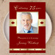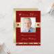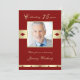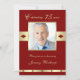 This fabulous 75th birthday party invitation features a photo of the birthday celebrant as the focal point in a nice golden frame on a burgundy background. The words "Celebrating 75 Years" appear above the photograph. Below the photo, are the words "Please join us in honouring" and then the name of the birthday celebrant. A gold bar appears along the bottom with burgundy diamond shapes along it. The reverse side of the invitation is reserved for your very important 75th birthday party invitation details. Copyright henishouseofpaper